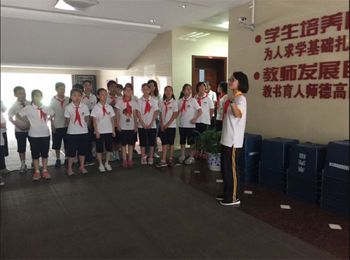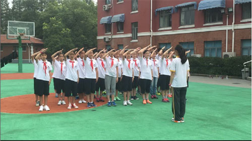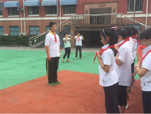 在第二天的队风纪检阅中,每一个班级都用尽自己全部的力气大声喊出班级的口号,唱队歌的气势,呼号的整齐,敬队礼的标准都不禁让校领导点头赞叹。